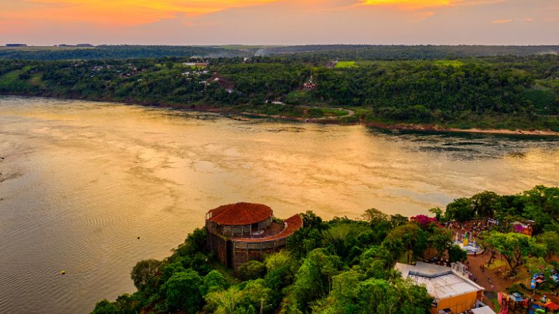 À tarde, você pode visitar o Marco das Três Fronteiras, que é um monumento que marca o encontro dos rios Iguaçu e Paraná, e também das fronteiras entre o Brasil, a Argentina e o Paraguai. O local tem uma vista privilegiada do pôr do sol, e também conta com um complexo turístico que oferece shows culturais, lojas de artesanato, espaço infantil e um restaurante. O Marco das Três Fronteiras fica a cerca de 6 km do Parque Nacional do Iguaçu, e você pode chegar lá de ônibus, aplicativo de transporte ou táxi. O ingresso custa R$ 30,00 para adultos e R$ 15,00 para crianças de 6 a 11 anos. Menores de 6 anos não pagam.