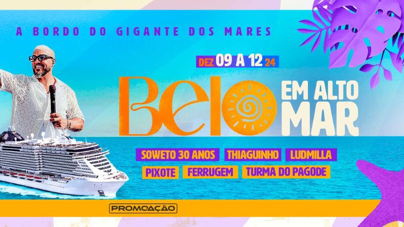 O cruzeiro “Belo em Alto Mar” acontecerá de 20 a 23 de setembro de 2024. São quatro dias de muita música, diversão e experiências inesquecíveis em alto mar.