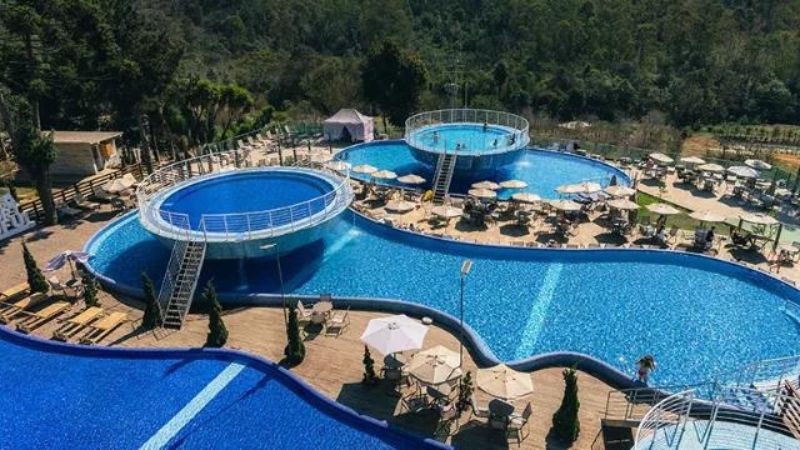- Piscinas: o resort tem três piscinas, sendo uma externa e duas internas, todas aquecidas e com hidromassagem. A piscina externa tem um tobogã e um bar molhado, e a piscina interna tem uma cascata e uma sauna. Você pode nadar, relaxar ou se refrescar nas piscinas, que funcionam das 8h às 22h.