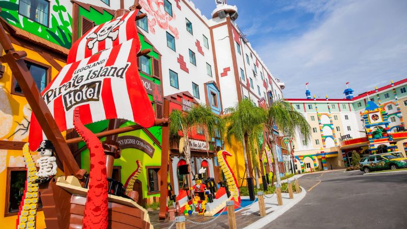 Localizado a apenas três minutos da entrada do LEGOLAND Florida Resort, o Pirate Island Hotel é um oásis temático onde cada detalhe é pensado para encantar. Com 150 quartos vibrantes e cheios de diversão, o hotel oferece uma experiência imersiva para os pequenos e conforto para os adultos.
